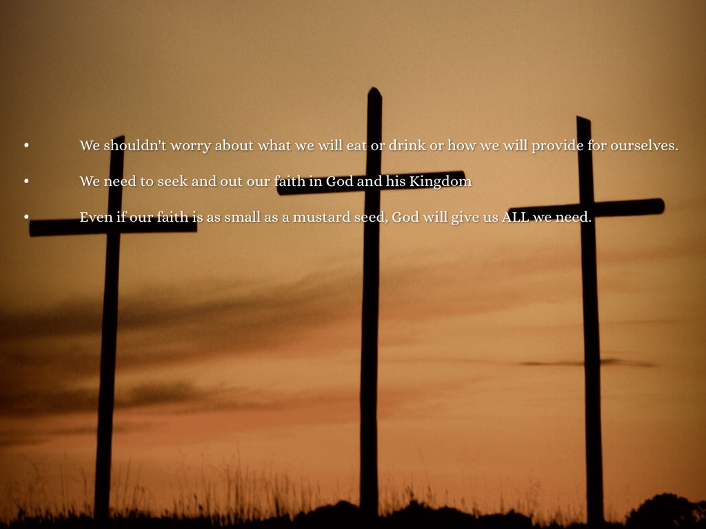We shouldn't worry about what we will eat or drink or how we will provide for ourselves.