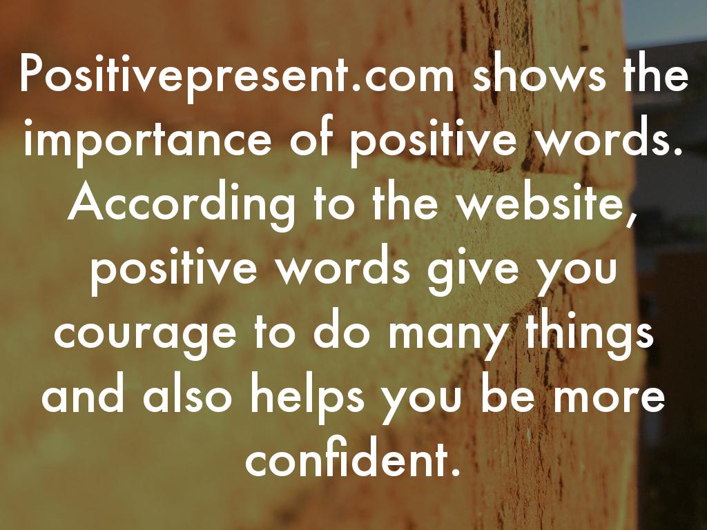 Positivepresent.com shows the importance of positive words. According to the website, positive words give you courage to do many things and also helps you be more confident.
