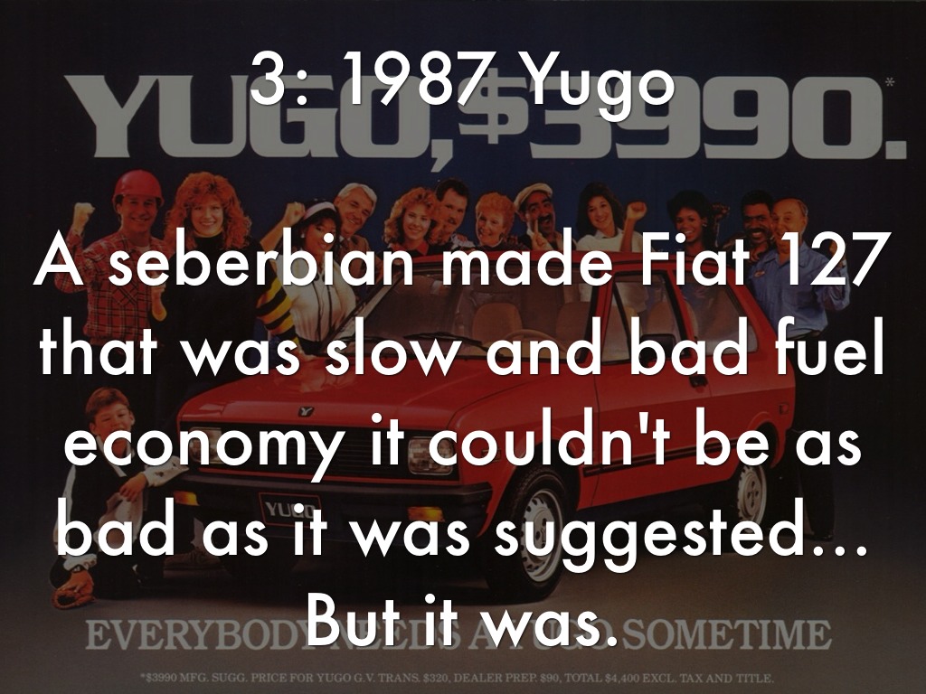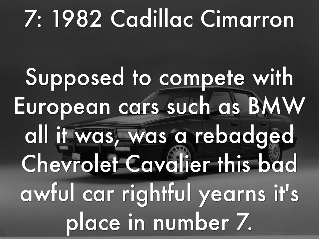 Supposed to compete with European cars such as BMW all it was, was a rebadged Chevrolet Cavalier this bad awful car rightful yearns it's place in number 7.