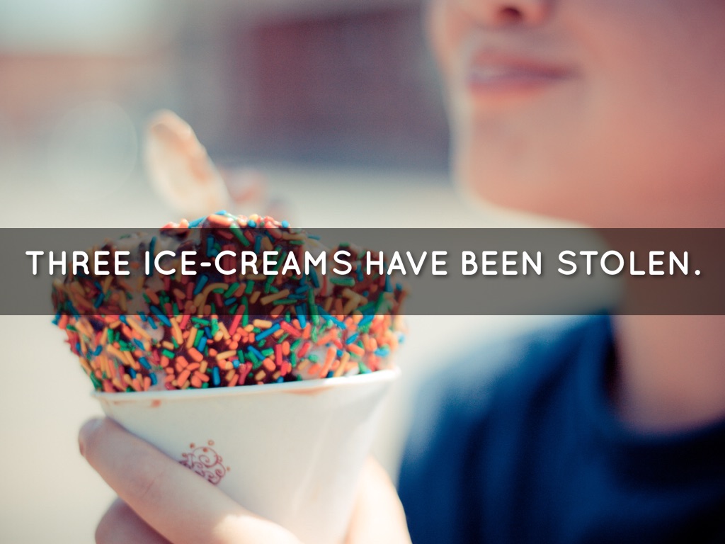 THREE ICE-CREAMS HAVE BEEN STOLEN.