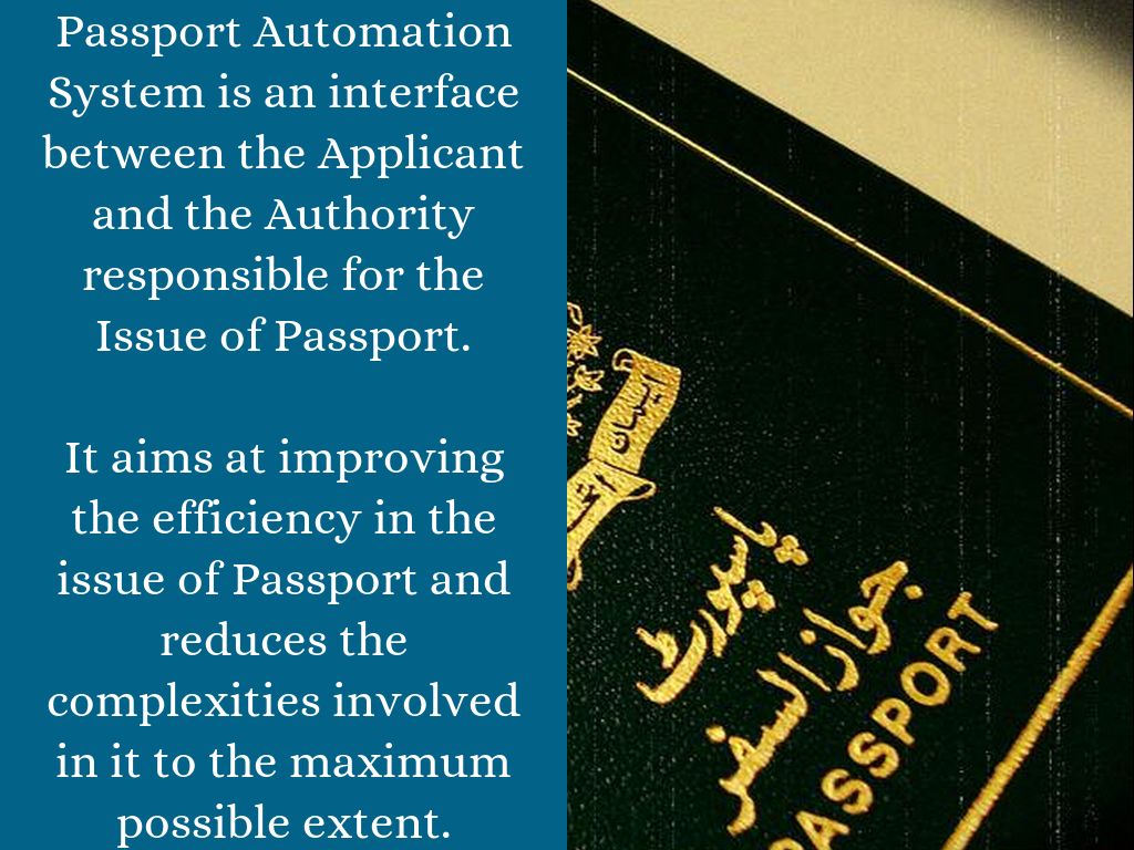 Passport Automation System is an interface between the Applicant and the Authority responsible for the Issue of Passport.