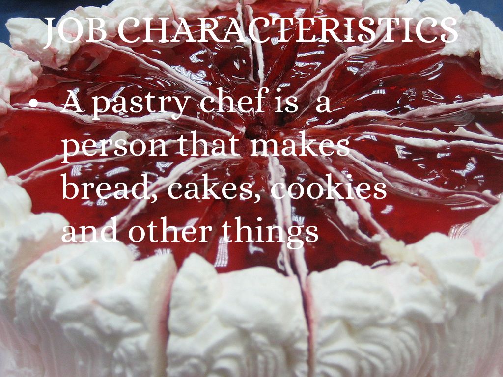 A pastry chef is a person that makes bread, cakes, cookies and other things