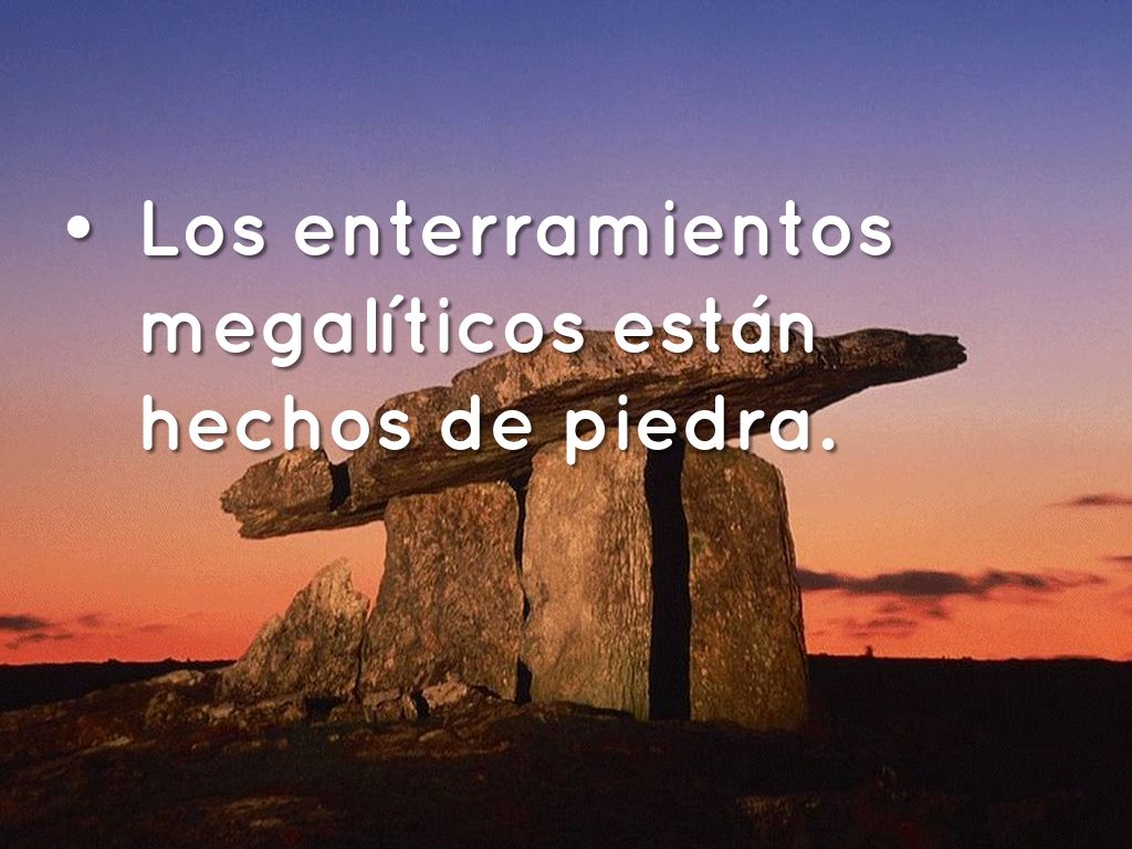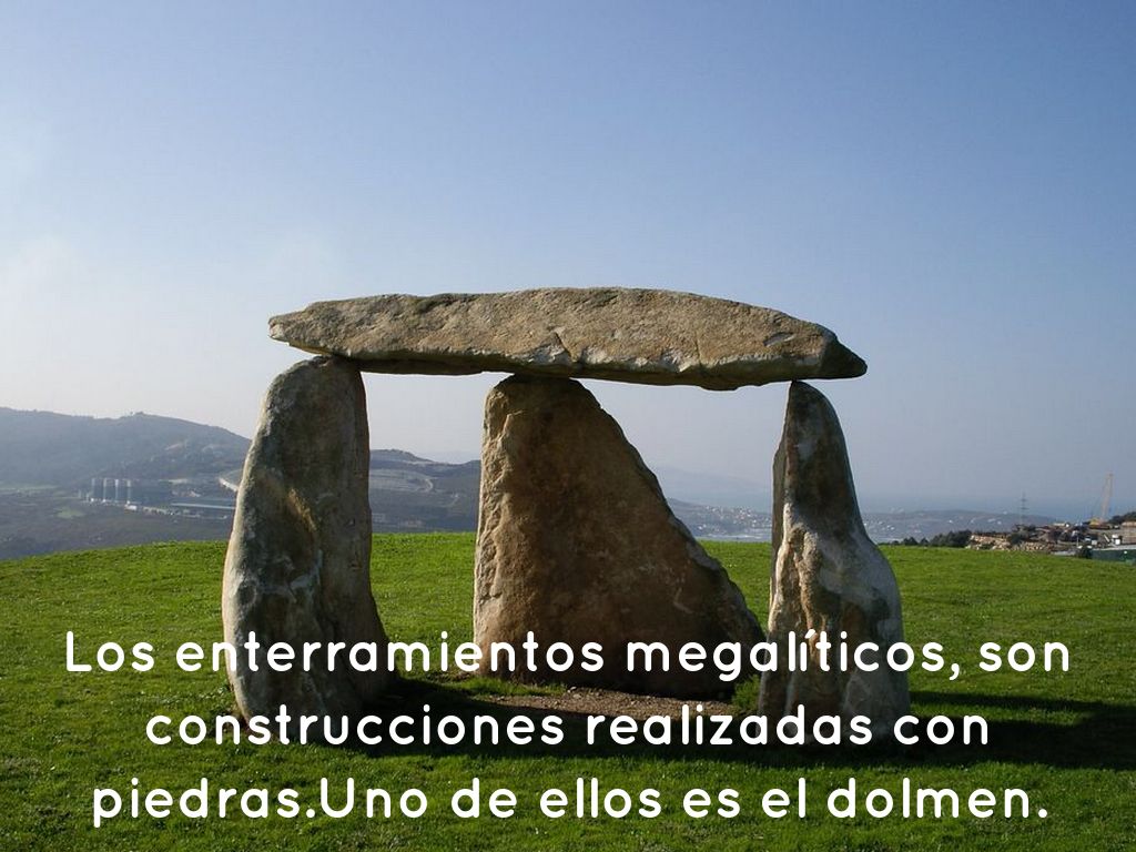 Los enterramientos megalíticos, son construcciones realizadas con piedras.Uno de ellos es el dolmen.