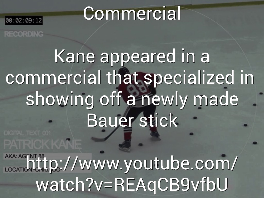 Kane appeared in a commercial that specialized in showing off a newly made Bauer stick