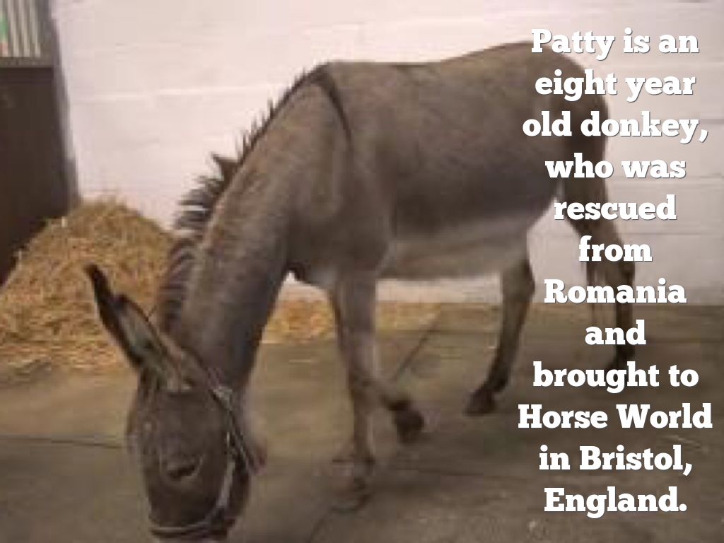Patty is an eight year old donkey, who was rescued from Romania and brought to Horse World in Bristol, England.