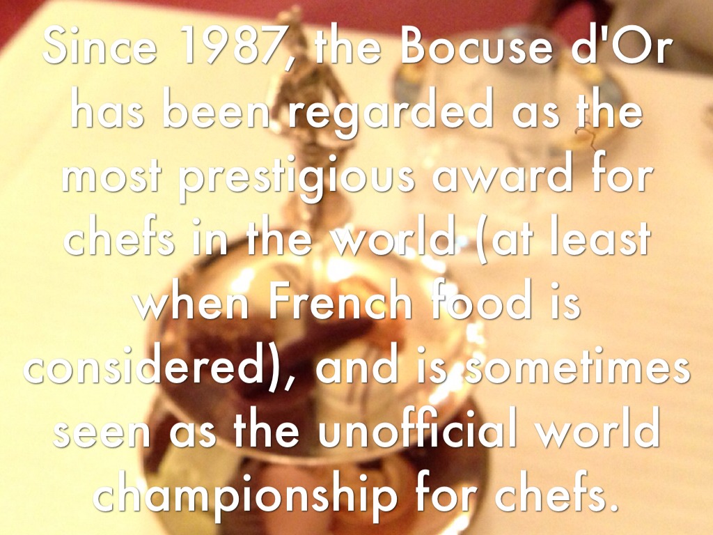 Since 1987, the Bocuse d'Or has been regarded as the most prestigious award for chefs in the world (at least when French food is considered), and is sometimes seen as the unofficial world championship for chefs.