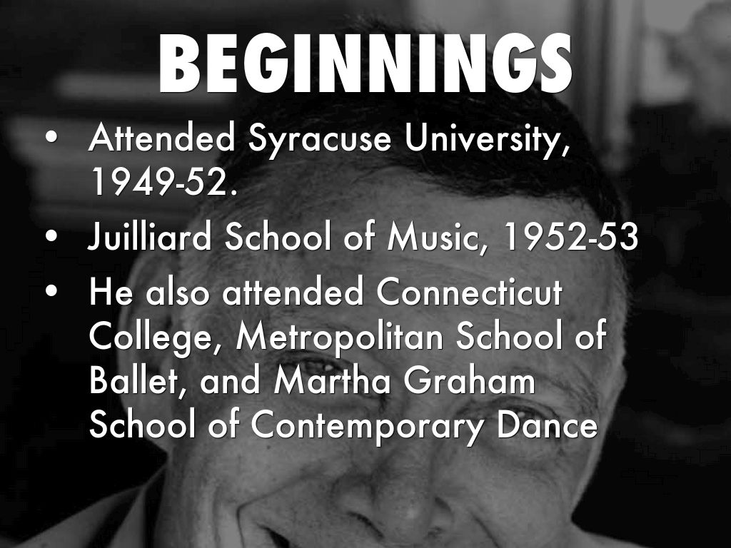 He also attended Connecticut College, Metropolitan School of Ballet, and Martha Graham School of Contemporary Dance