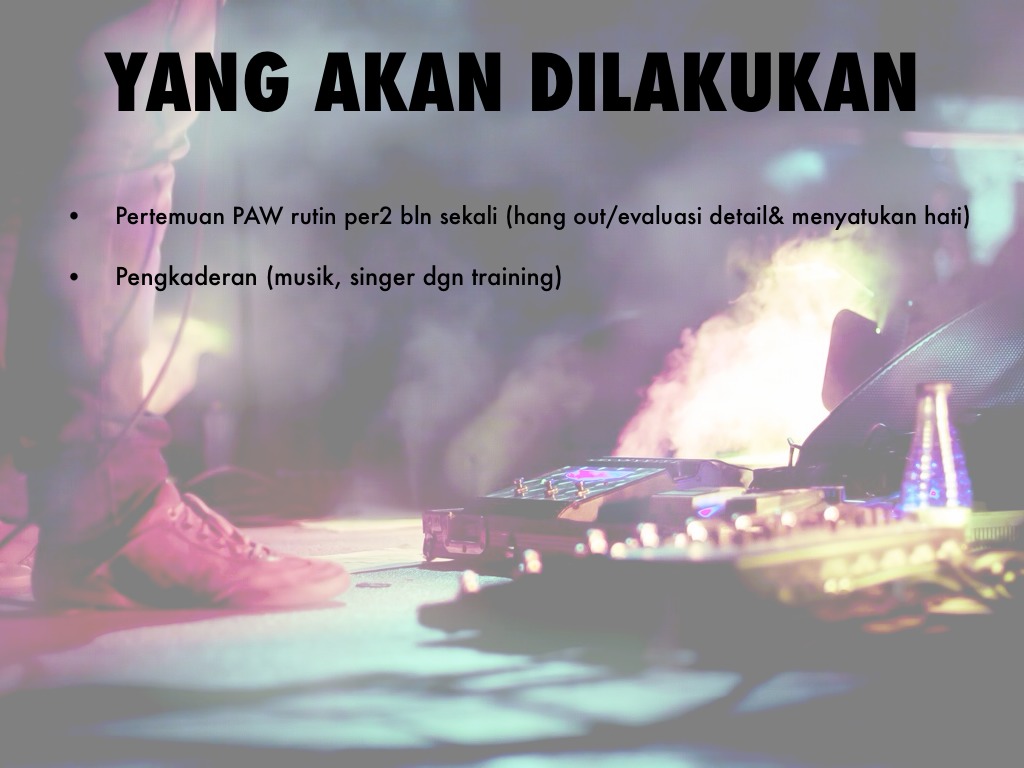 Pertemuan PAW rutin per2 bln sekali (hang out/evaluasi detail& menyatukan hati)