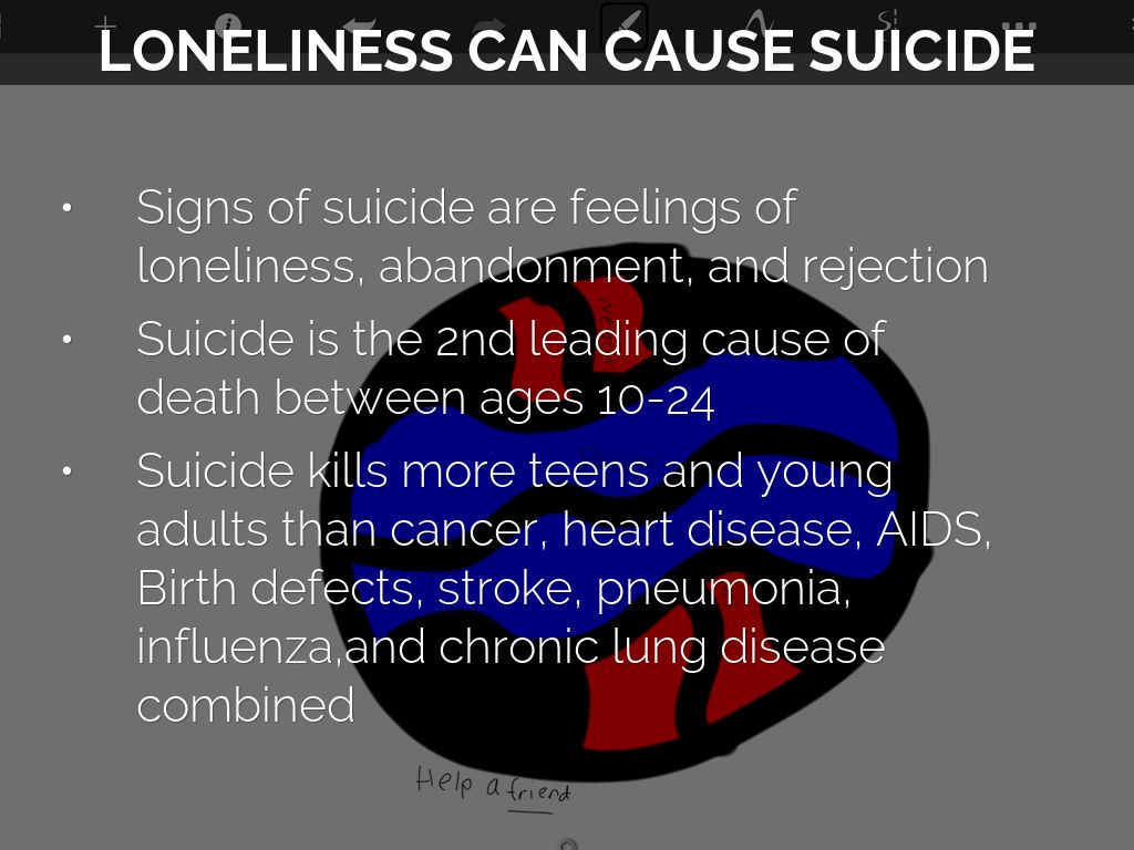 Signs of suicide are feelings of loneliness, abandonment, and rejection