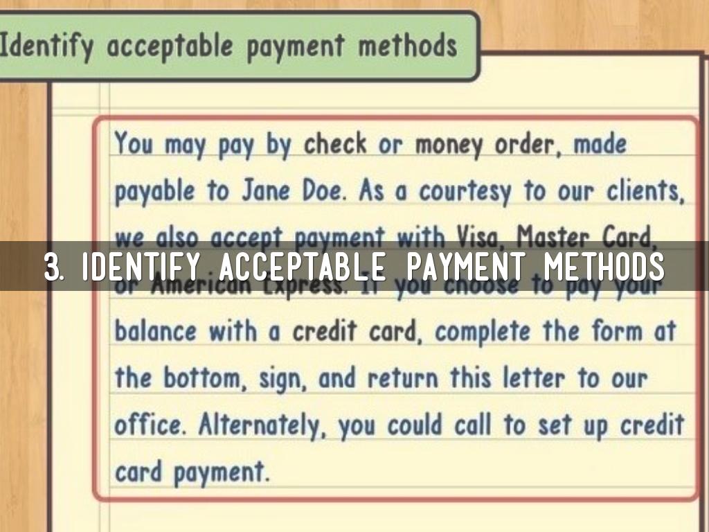 3. Identify acceptable payment methods