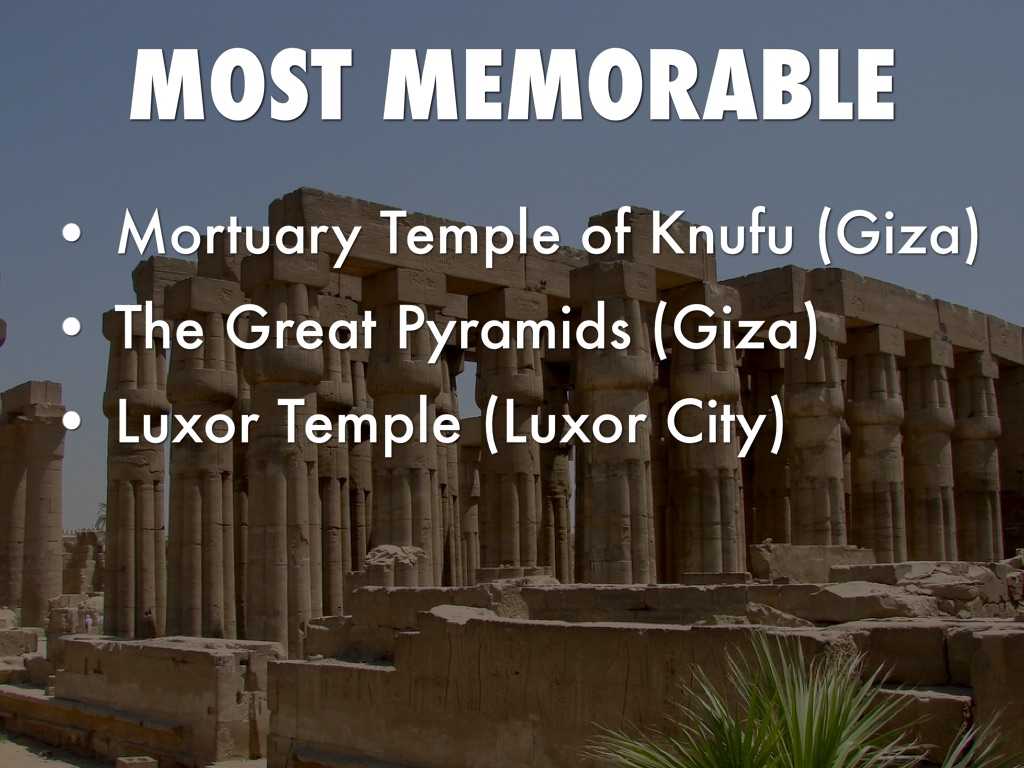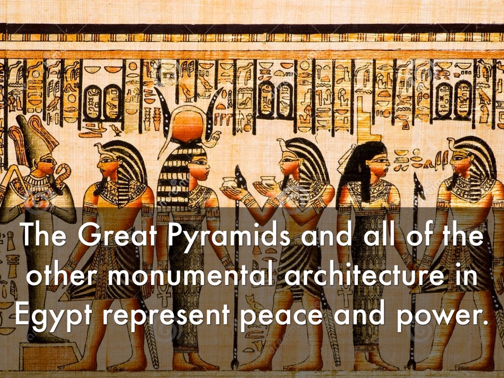 The Great Pyramids and all of the other monumental architecture in Egypt represent peace and power.