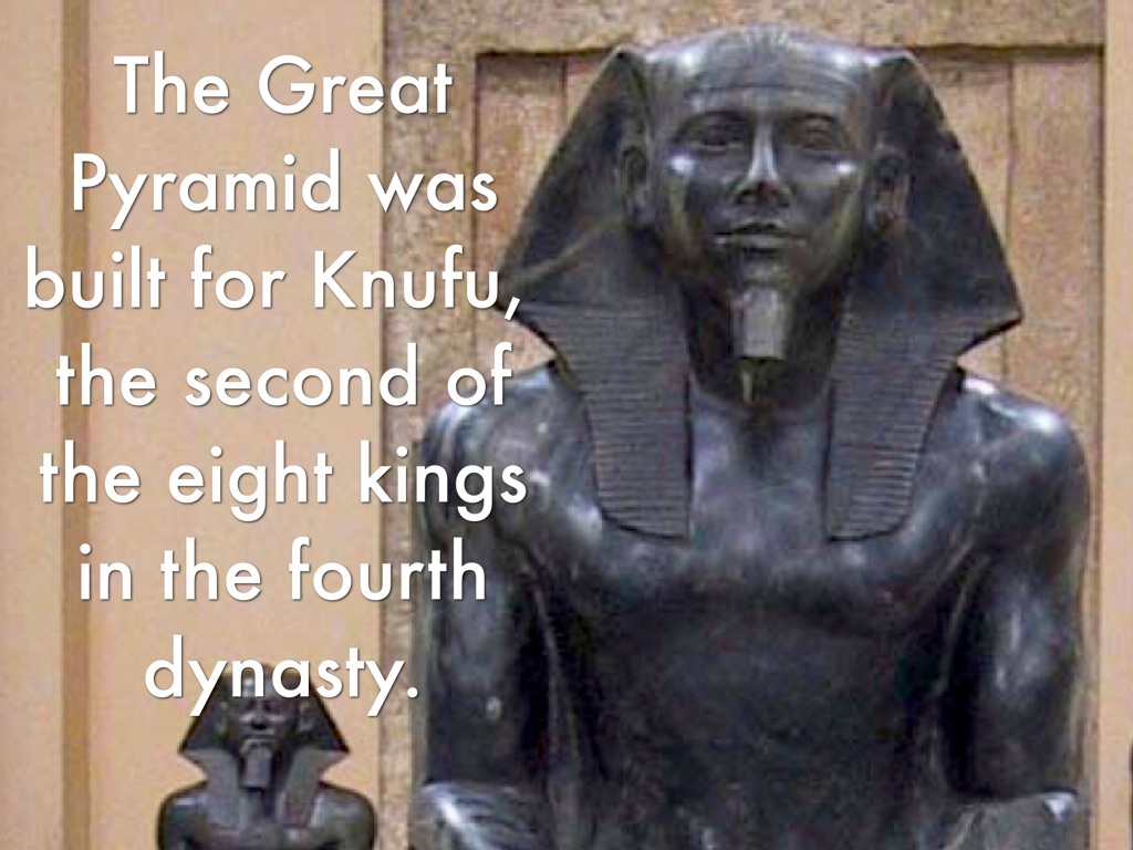 The Great Pyramid was built for Knufu, the second of the eight kings in the fourth dynasty.