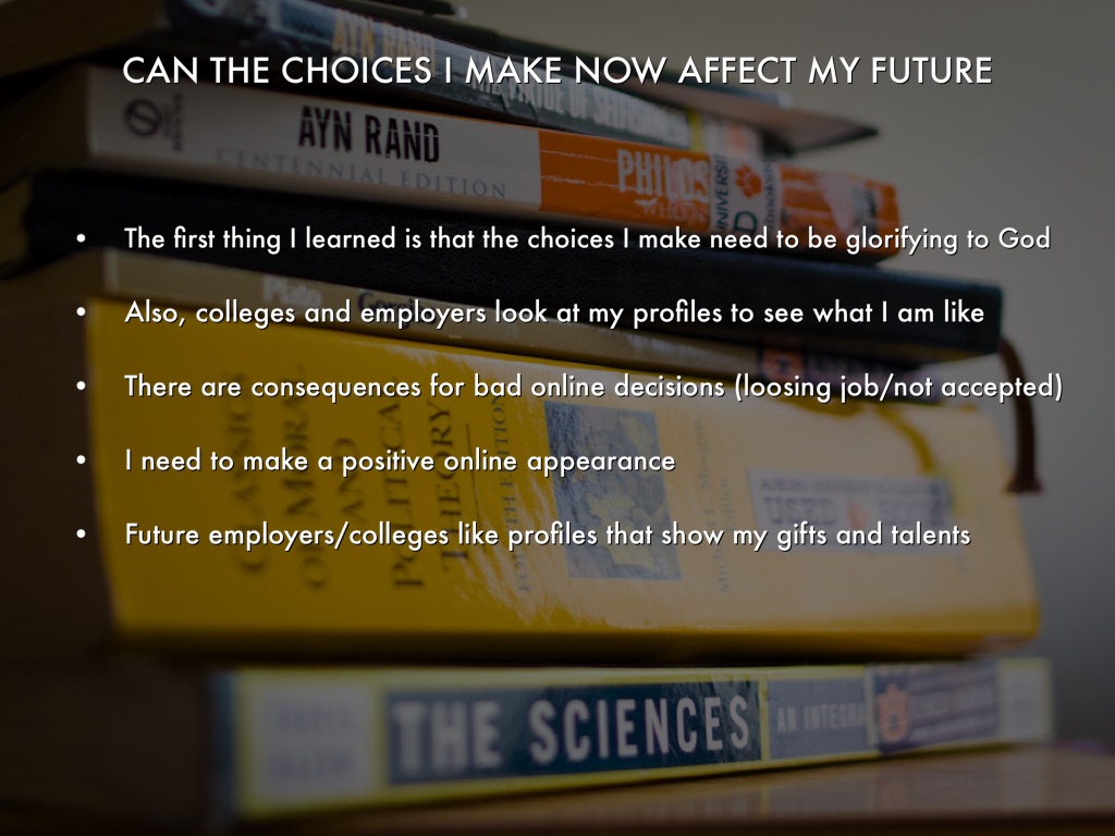 CAN THE CHOICES I MAKE NOW AFFECT MY FUTURE
