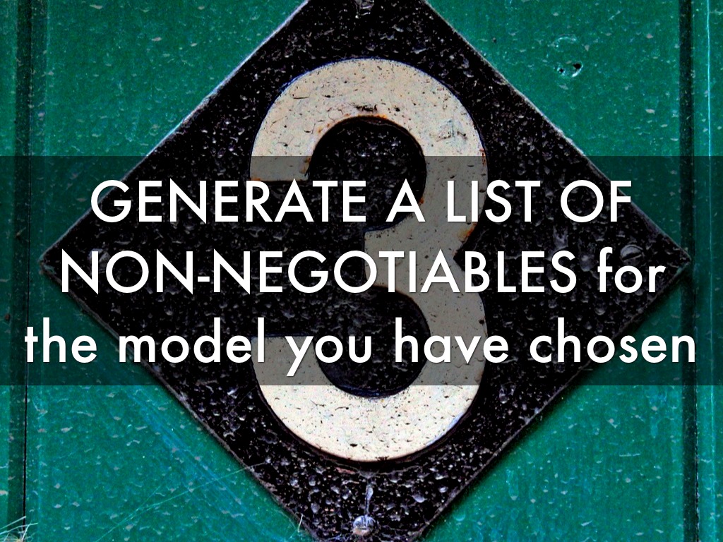 GENERATE A LIST OF NON-NEGOTIABLES for the model you have chosen