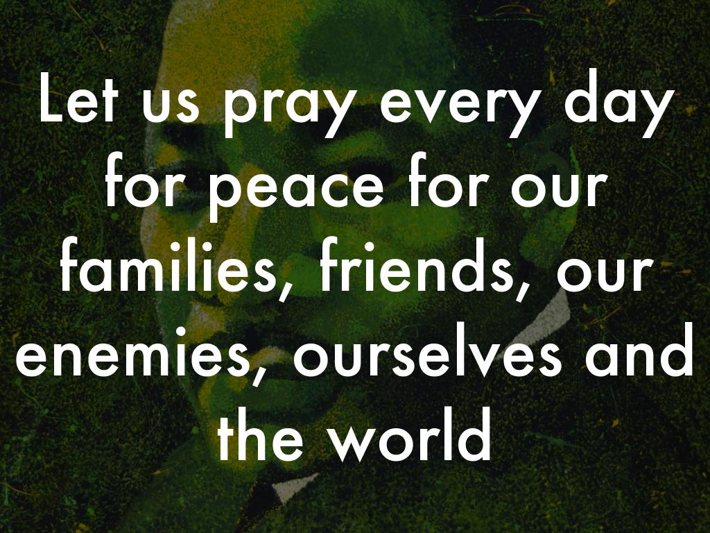 Let us pray every day for peace for our families, friends, our enemies, ourselves and the world
