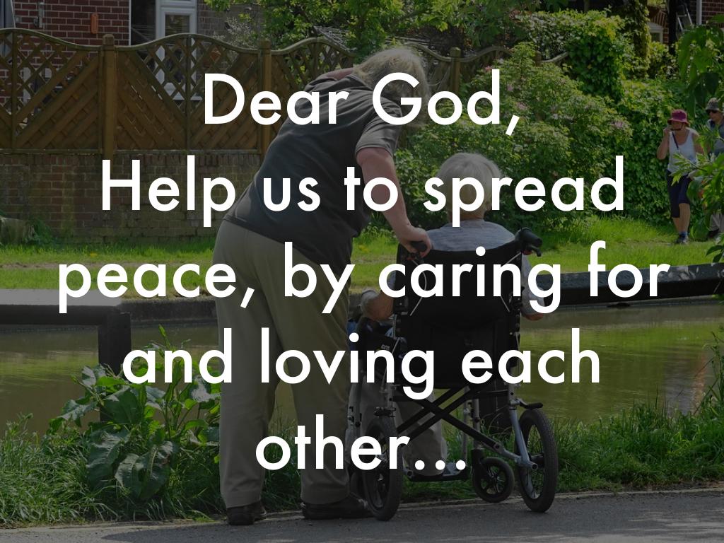 Help us to spread peace, by caring for and loving each other...