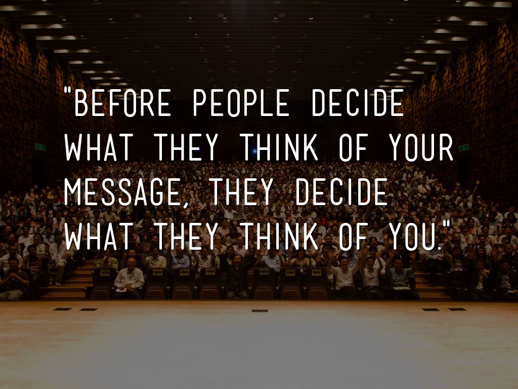 "Before people decide what they think of your message, they decide what they think of YOU."