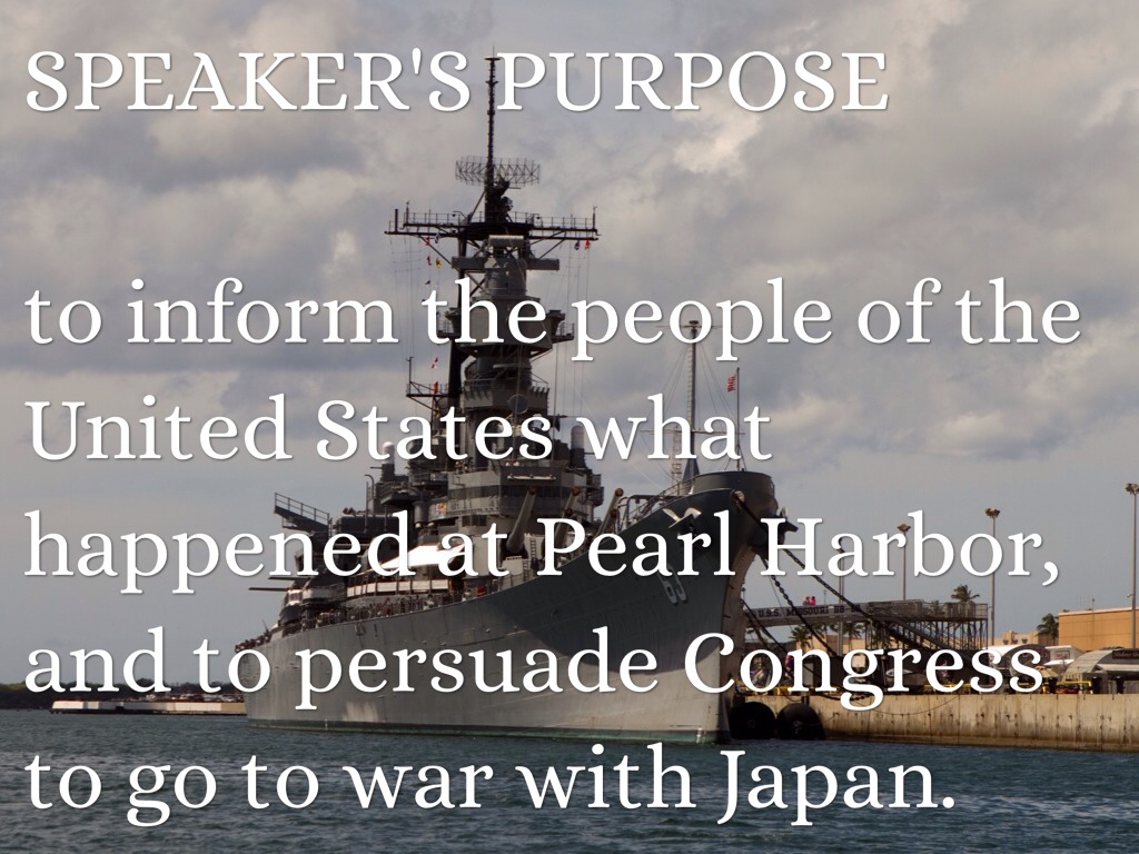 to inform the people of the United States what happened at Pearl Harbor, and to persuade Congress to go to war with Japan.