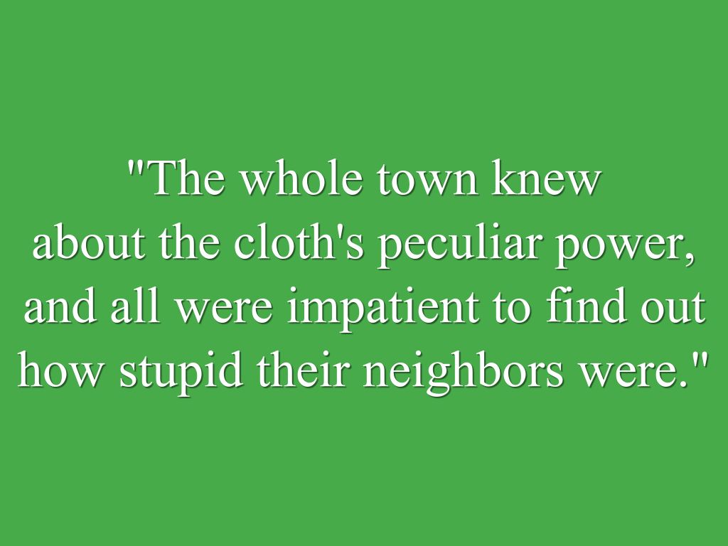 about the cloth's peculiar power, and all were impatient to find out how stupid their neighbors were."