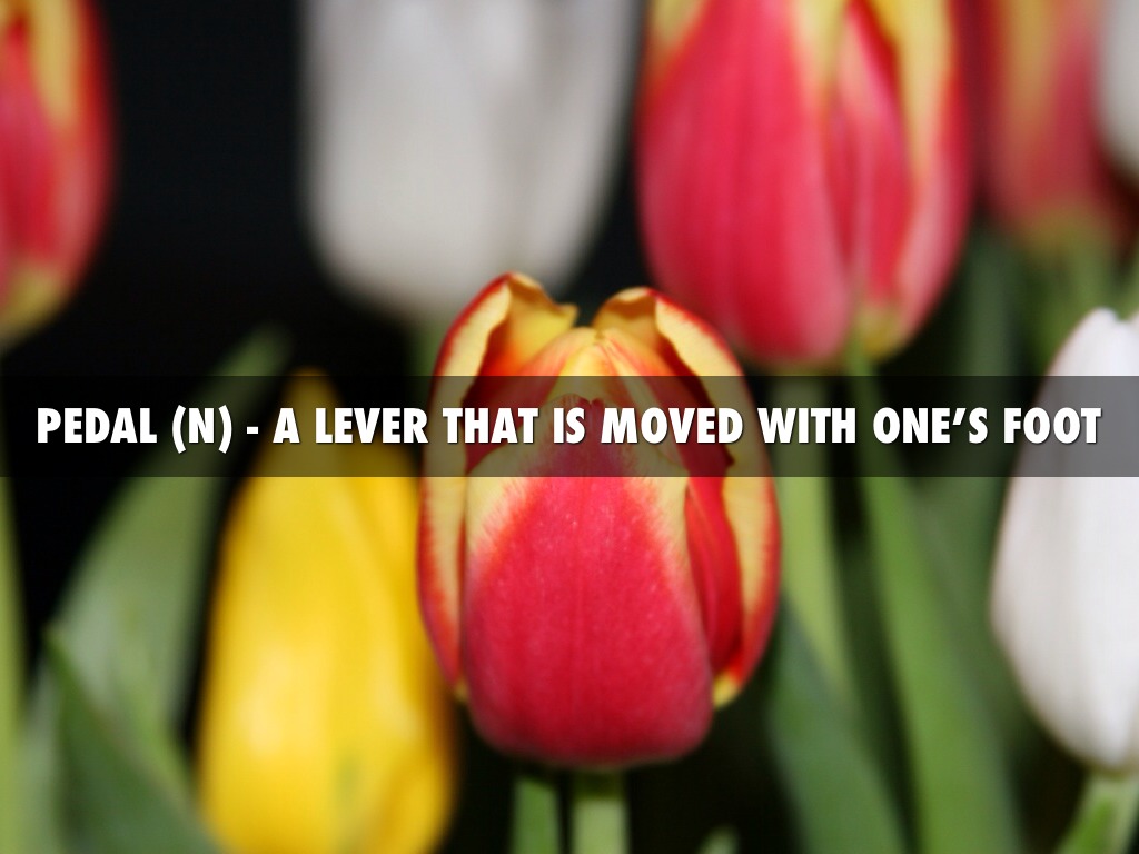 PEDAL (N) - A LEVER THAT IS MOVED WITH ONE’S FOOT