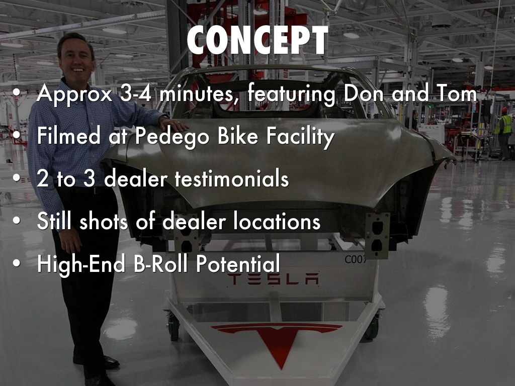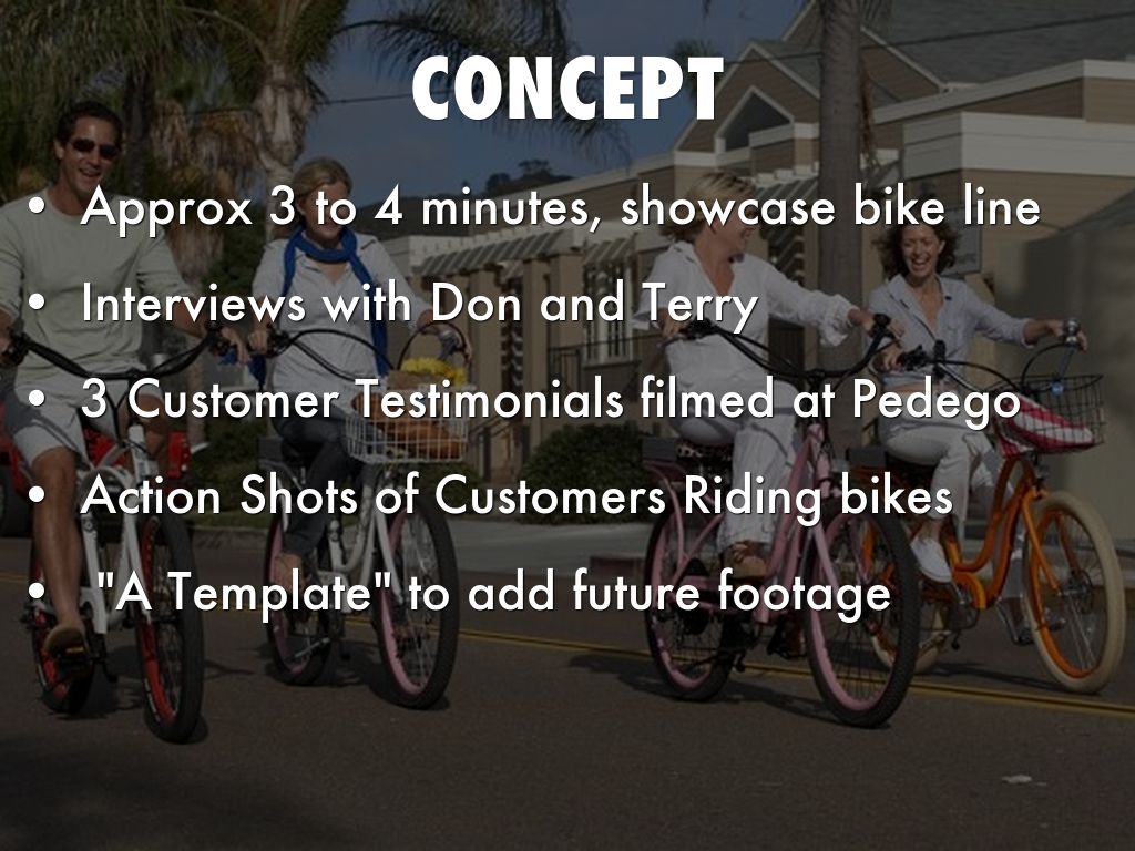 Our goal with this video is to have an ad web commercial piece to rival most commercial pieces that will get people thinking "Pedego" when they think of electric bikes, much like they think of Tesla with electric cars.