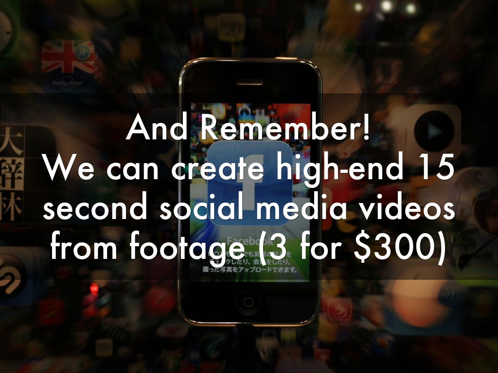 We can create high-end 15 second social media videos from footage (3 for $300)