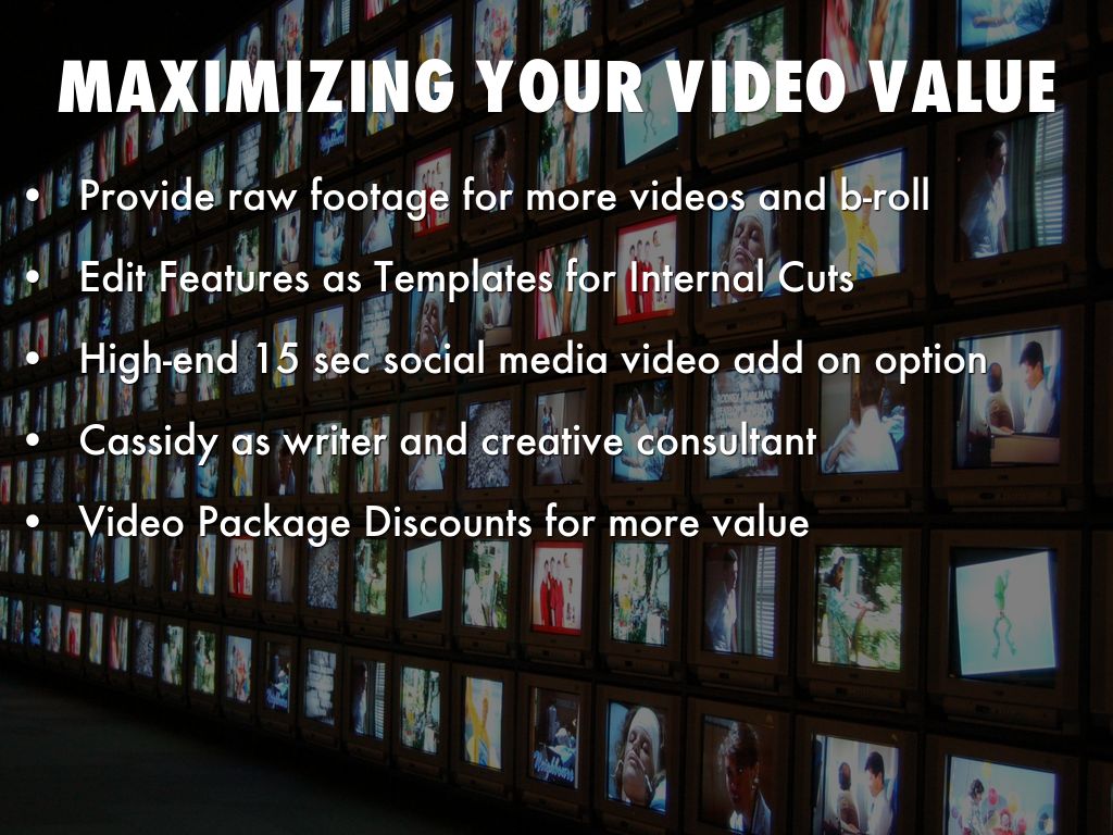 2. Certain videos can be edited as such as to act as "template" pieces for in-house to add or subtract more footage to future needs.