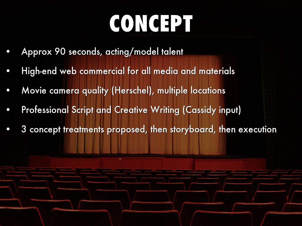 - OR, One approx 2:30 action-narrative piece showcasing all product lines