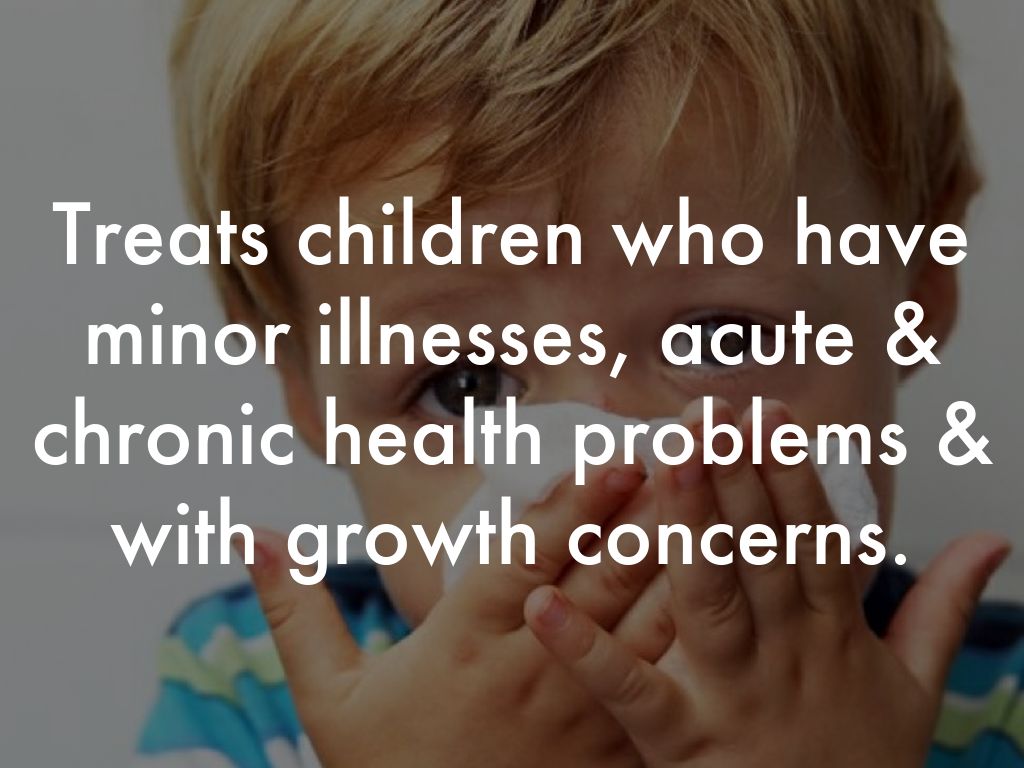 Treats children who have minor illnesses, acute & chronic health problems & with growth concerns.
