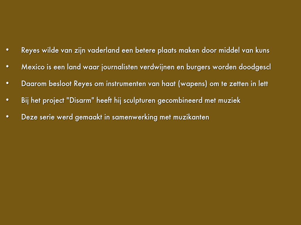 Daarom besloot Reyes om instrumenten van haat (wapens) om te zetten in lett