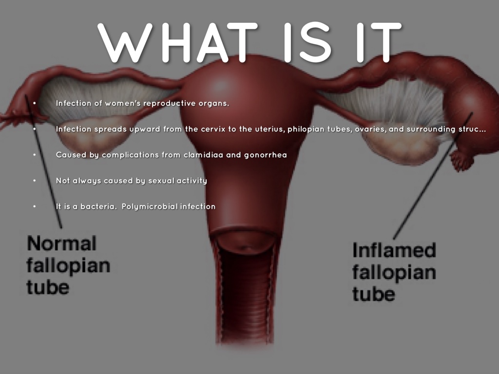 Infection spreads upward from the cervix to the uterius, philopian tubes, ovaries, and surrounding structures.