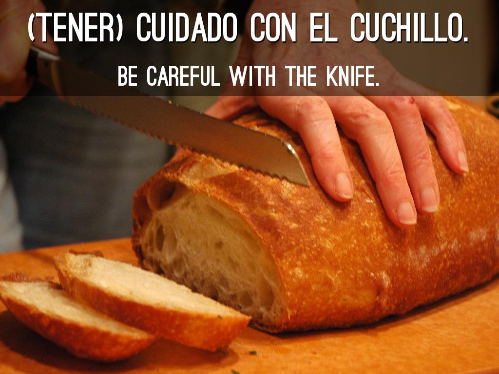 (CORTAR) LA FRUTA EN TROZOS CON EL CUCHILLO.