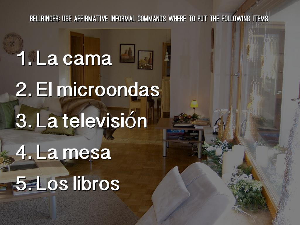 BELLRINGER: USE AFFIRMATIVE INFORMAL COMMANDS WHERE TO PUT THE FOLLOWING ITEMS.