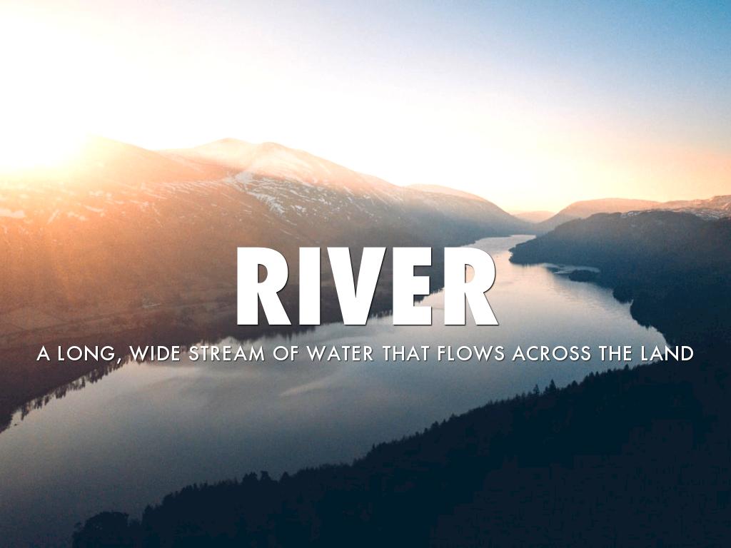 A LONG, WIDE STREAM OF WATER THAT FLOWS ACROSS THE LAND