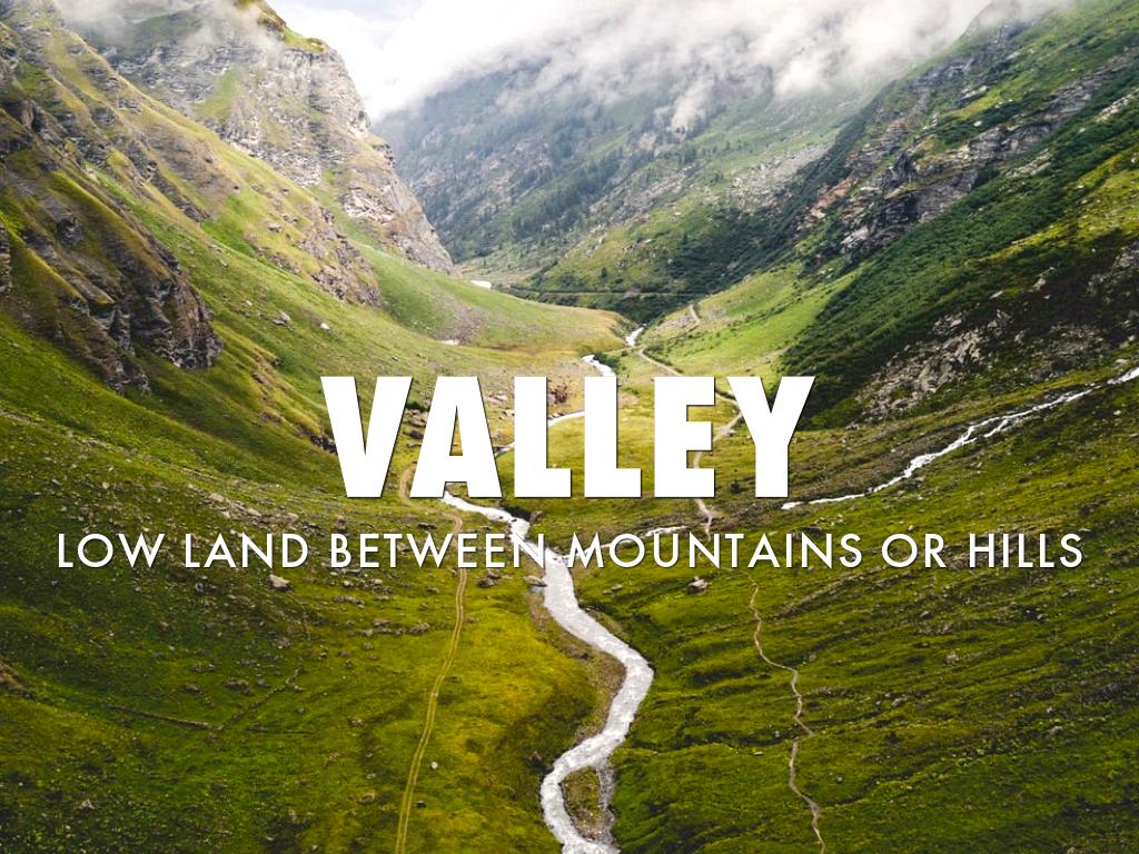 LOW LAND BETWEEN MOUNTAINS OR HILLS