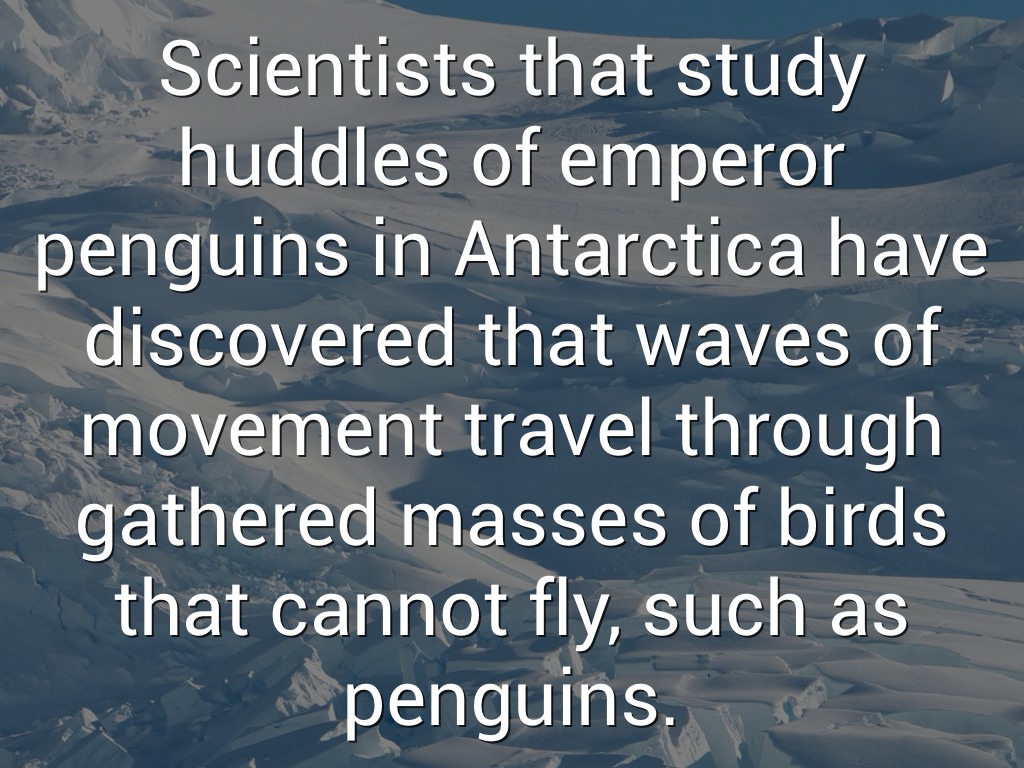 Scientists that study huddles of emperor penguins in Antarctica have discovered that waves of movement travel through gathered masses of birds that cannot fly, such as penguins.