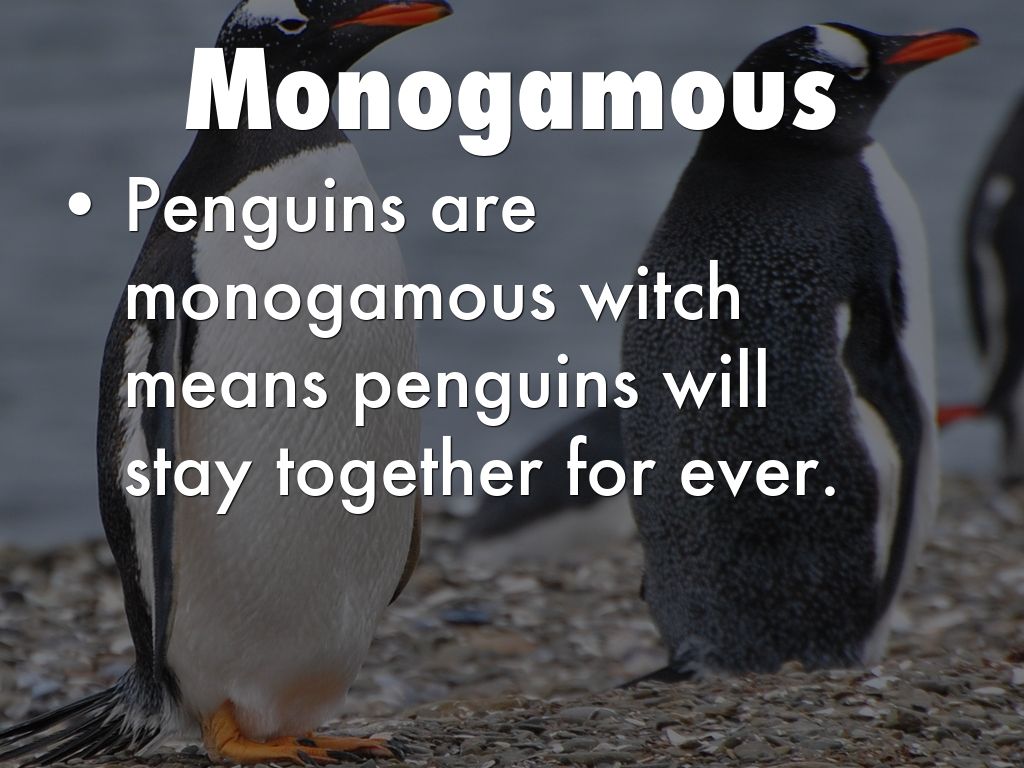 • Penguins are monogamous witch means penguins will stay together for ever.