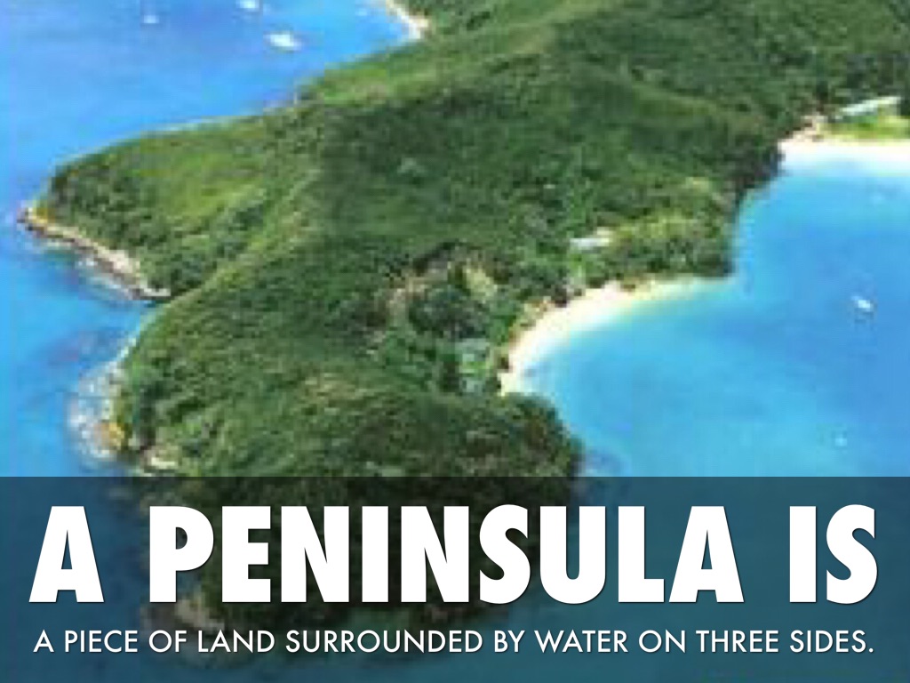 A PIECE OF LAND SURROUNDED BY WATER ON THREE SIDES.