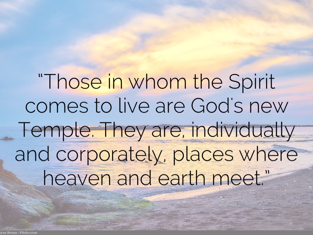 “Those in whom the Spirit comes to live are God's new Temple. They are, individually and corporately, places where heaven and earth meet.”