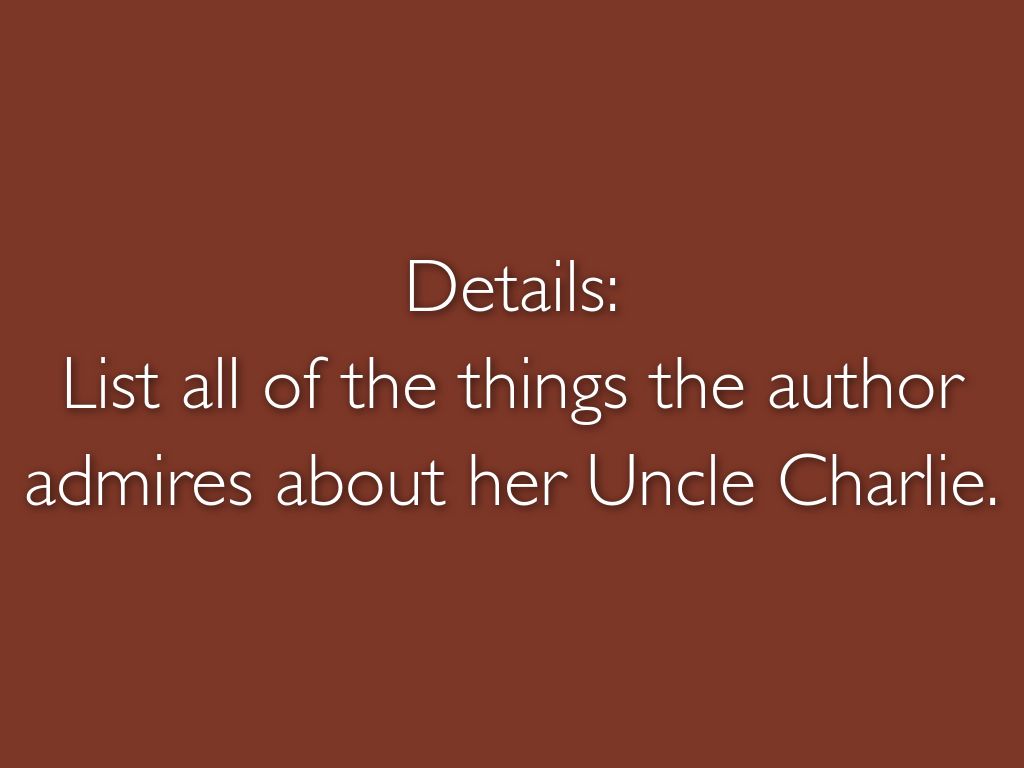 List all of the things the author admires about her Uncle Charlie.