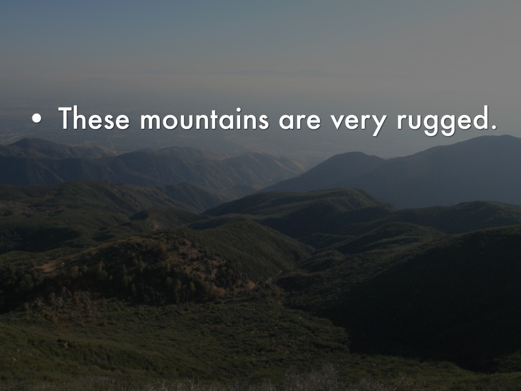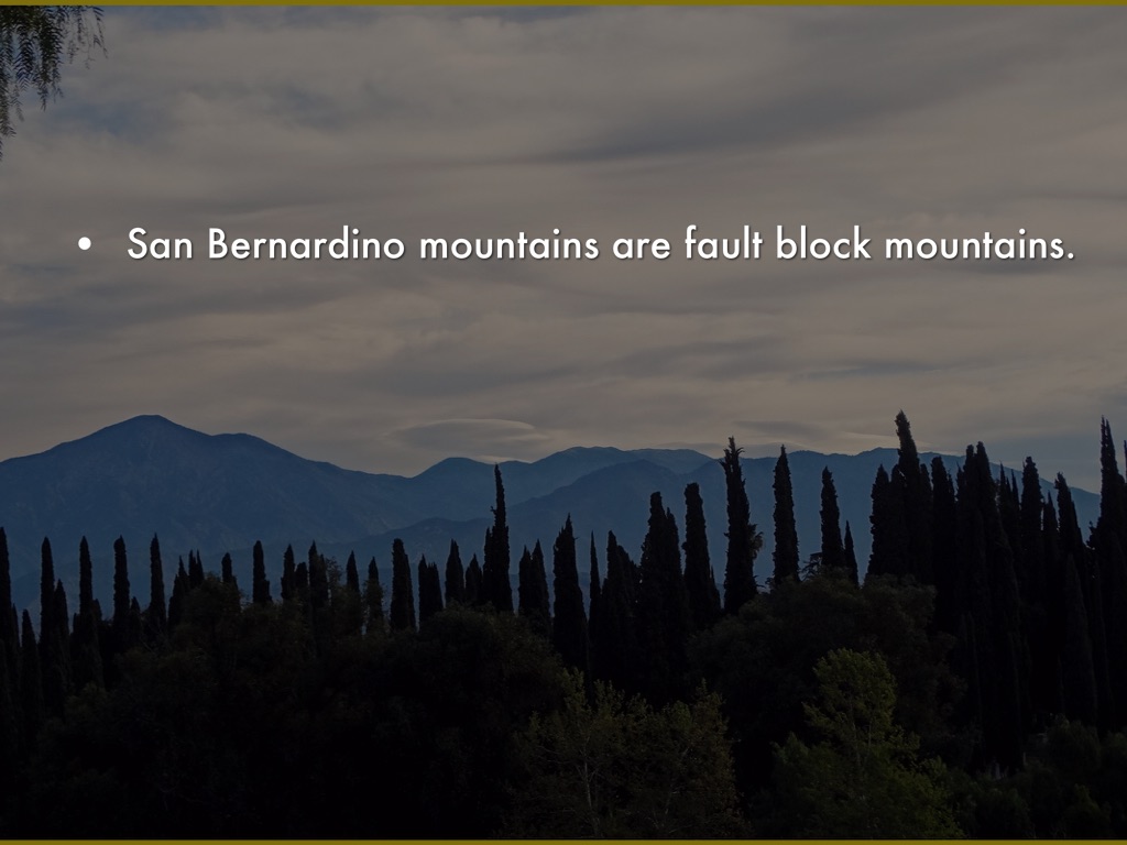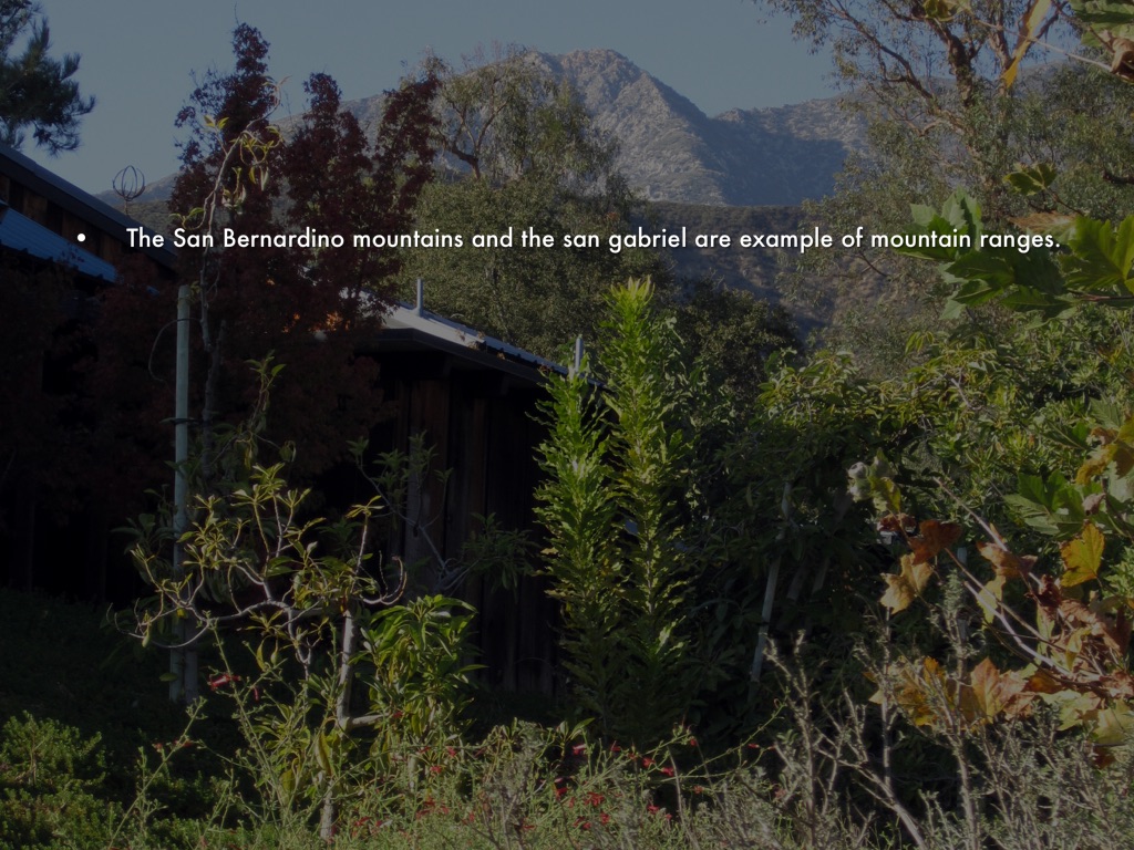 The San Bernardino mountains and the san gabriel are example of mountain ranges.