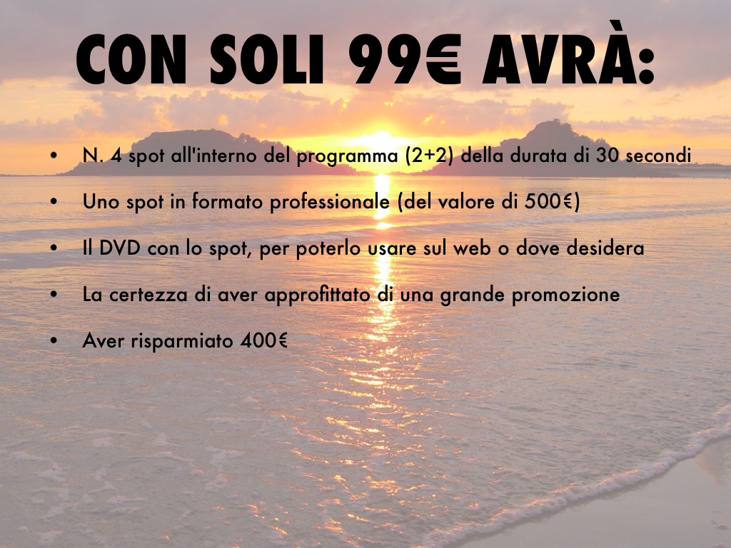 N. 4 spot all'interno del programma (2+2) della durata di 30 secondi
