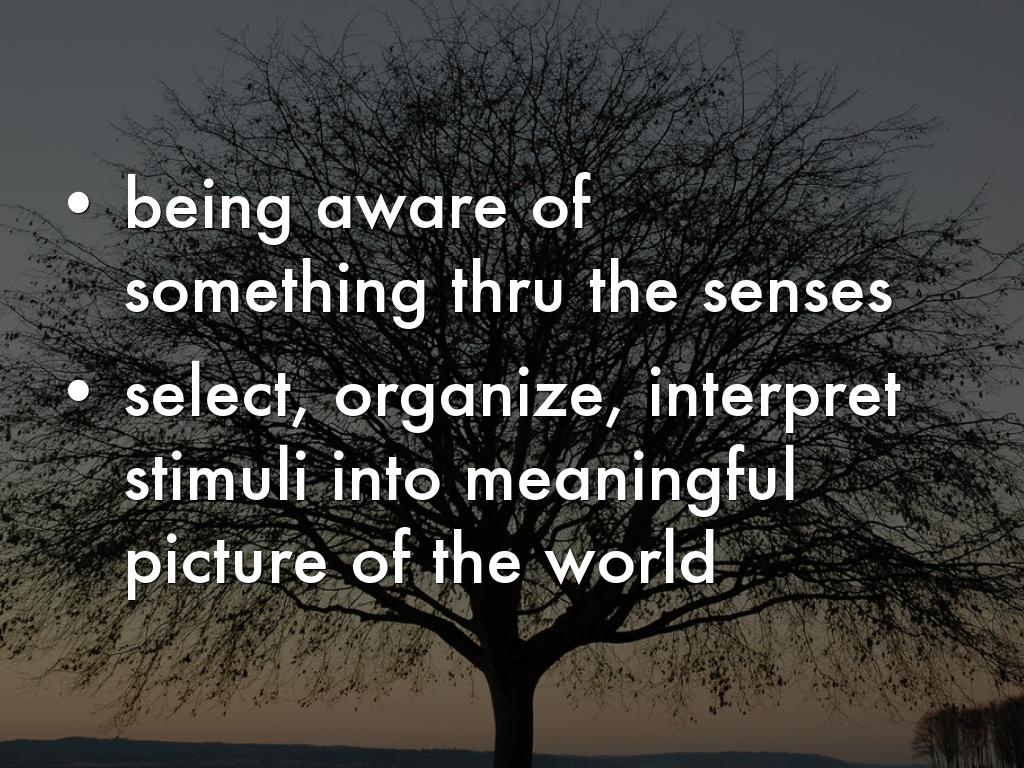 • select, organize, interpret stimuli into meaningful picture of the world