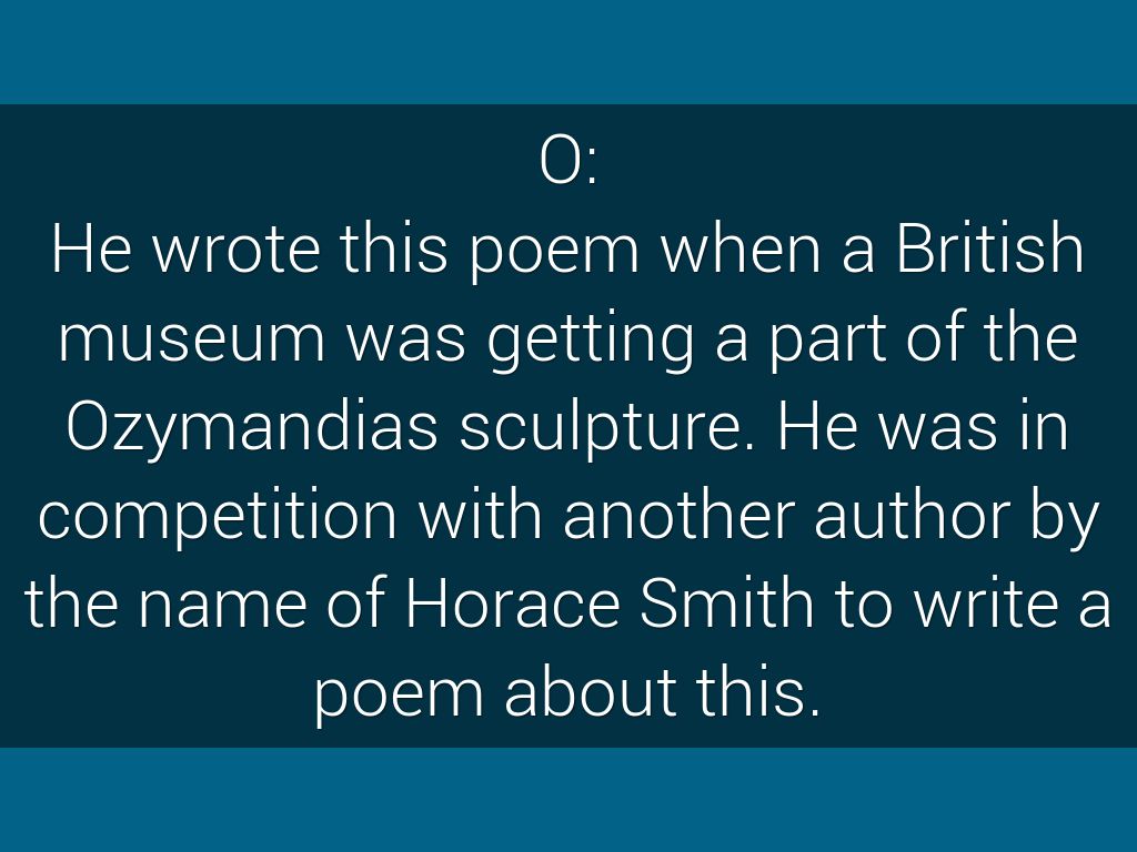 He wrote this poem when a British museum was getting a part of the Ozymandias sculpture. He was in competition with another author by the name of Horace Smith to write a poem about this.