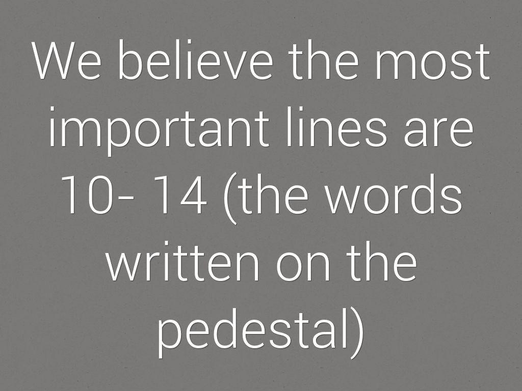 We believe the most important lines are 10- 14 (the words written on the pedestal)