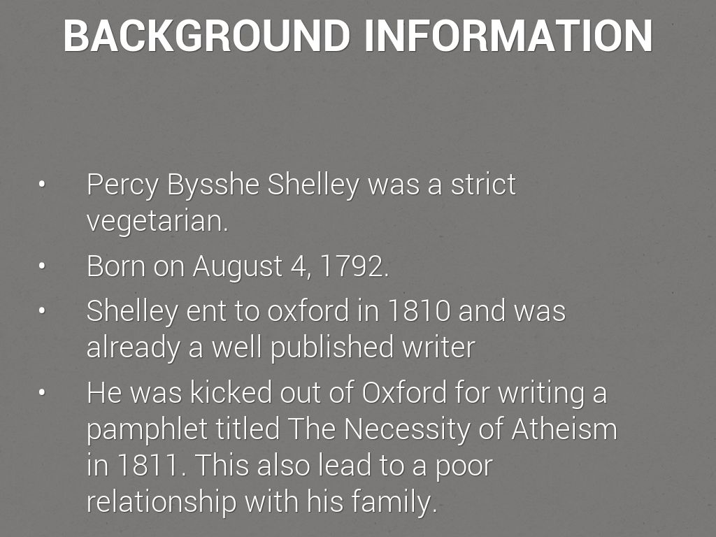 - He was kicked out of Oxford for writing a pamphlet titled The Necessity of Atheism in 1811. This also lead to a poor relationship with his family.