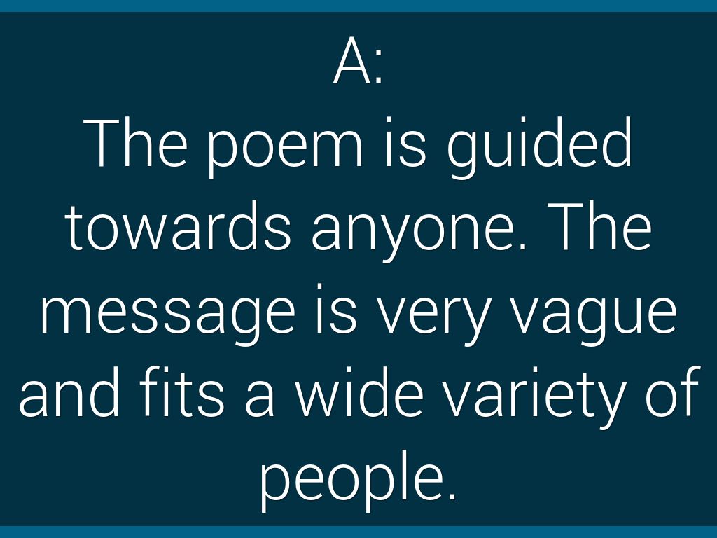 The poem is guided towards anyone. The message is very vague and fits a wide variety of people.