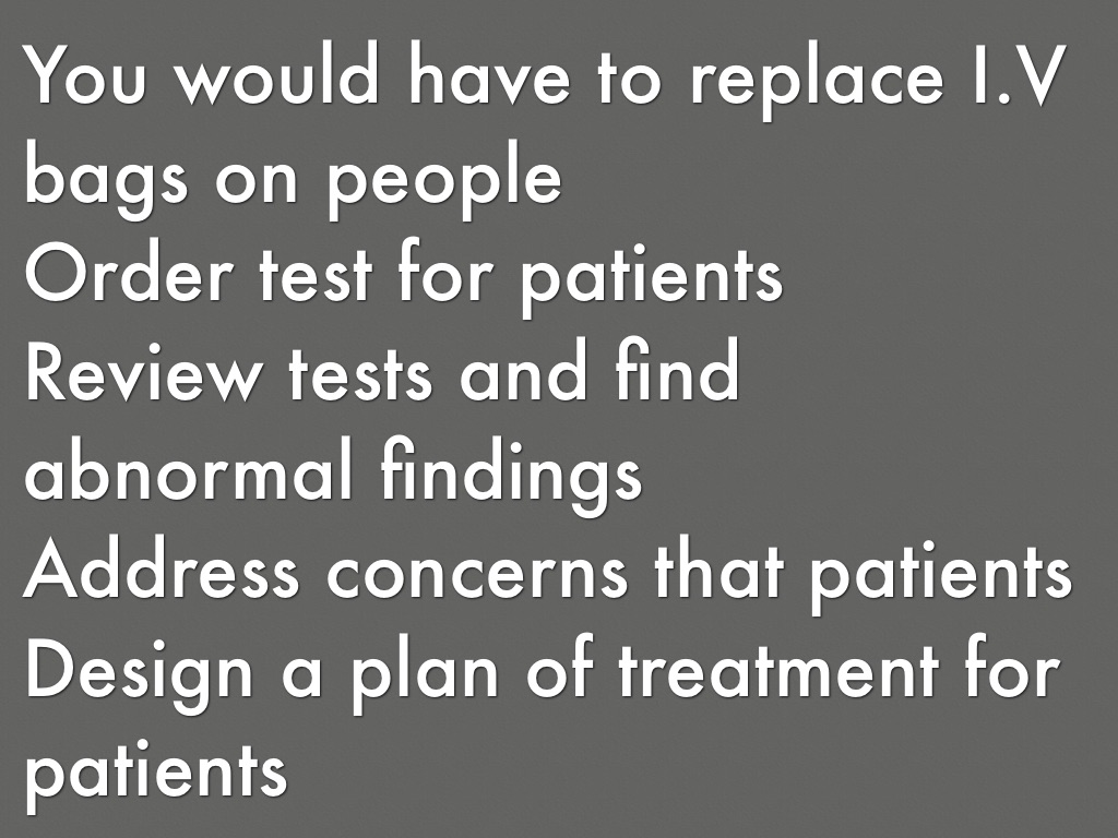 You would have to replace I.V bags on people