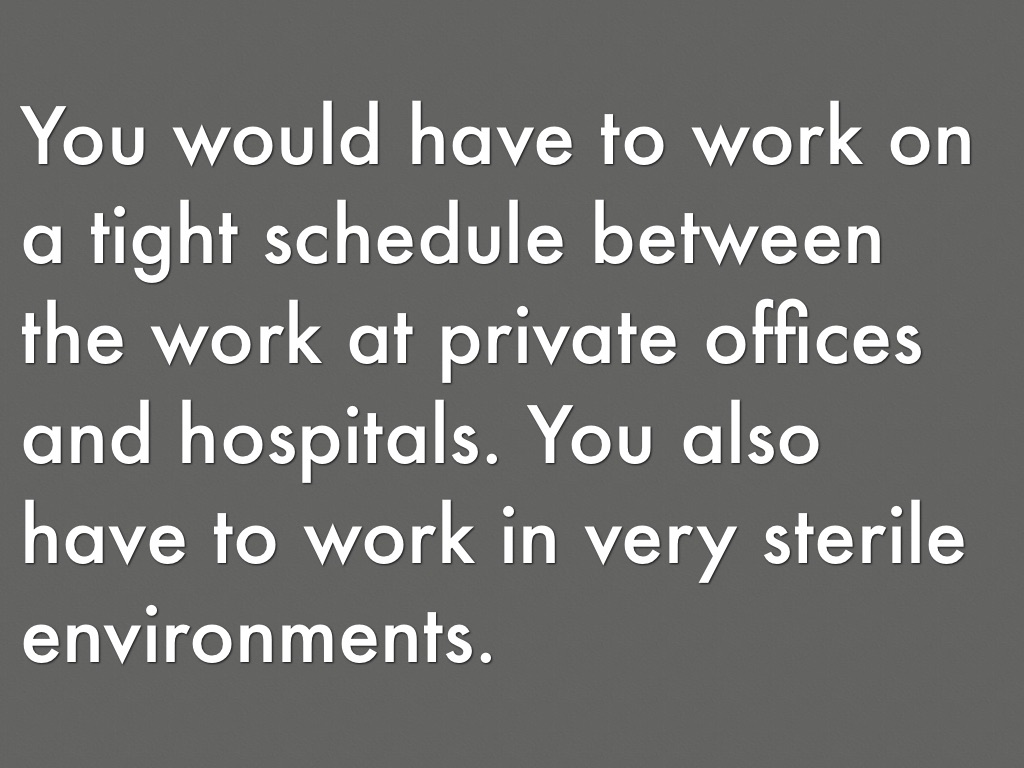 You would have to work on a tight schedule between the work at private offices and hospitals. You also have to work in very sterile environments.