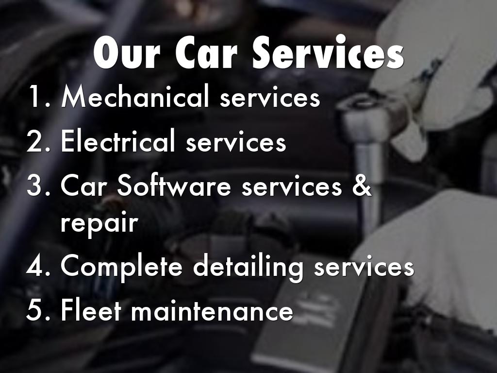 Mechanical services Electrical services Car Software services & repair Complete detailing services Fleet maintenance